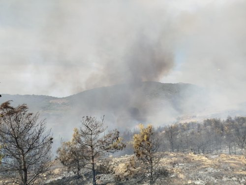 İzmir Büyükşehir Belediyesi İtfaiye Dairesi Başkanlığı’na bağlı ekipler Foça’da ormana sıçrayan yangının yerleşim yerlerine yaklaşmaması için müdahaleyi sürdürüyor.