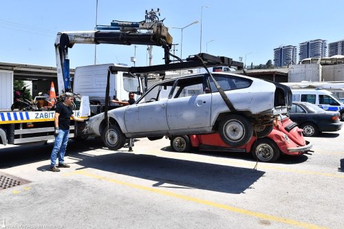 İzmir Büyükşehir Belediyesi kent genelinde trafik akışını engelleyen, güvenlik sorunu yaratan, görüntü ve çevre kirliliği oluşturan terk edilmiş hurda araçları, Menemen’in Kazımpaşa Mahallesi’nde kurduğu Hurda Araç Merkezi’ne toplamayı sürdürüyor. Türkiye’de belediyeye ait ilk hurda otoparkı olma özelliğini taşıyan 892 araç kapasiteli merkez 13 bin metrekarelik alanda yer alıyor. Lüks markalara ait hurda otomobillerin yanı sıra rüya gibi klasik araçlar 6 ay içerisinde alınmazsa ekonomiye kazandırılıyor.