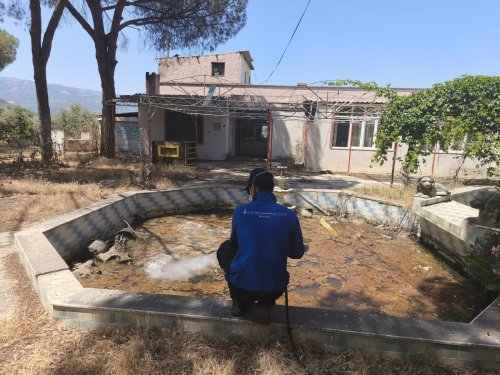 İzmir Büyükşehir Belediyesi, 30 ilçede 27 ekiple sivrisinek ve haşereye karşı üreme alanlarında çalışmalarını aralıksız sürdürüyor.