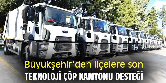 İzmir Büyükşehir Belediyesi, ilçe belediyelerinin temizlik hizmetlerine modern araçlarla destek olmak amacıyla 10,5 milyon liralık maliyetle satın aldığı 15 çöp kamyonunu ilçe belediyelerine hibe etti.