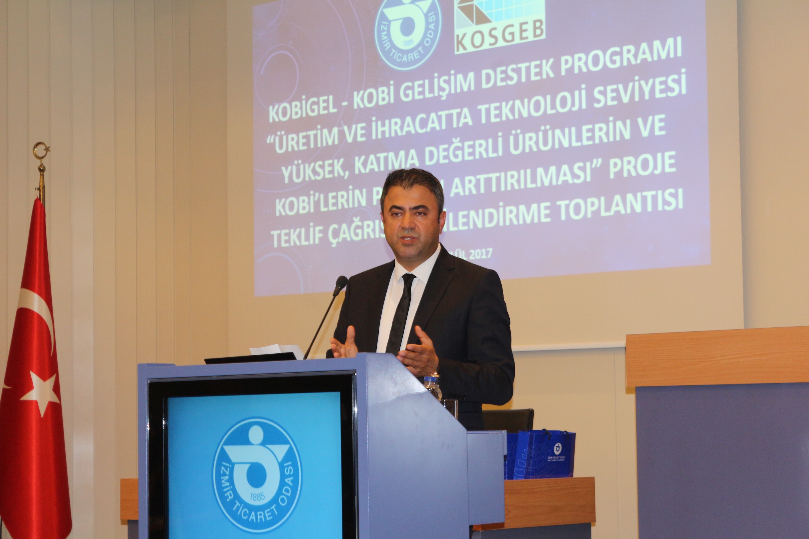 Küçük ve Orta Ölçekli İşletmeleri Geliştirme ve Destekleme İdaresi Başkanlığı(KOSGEB) “İmalat Sanayi” sektörüne yönelik “Üretim ve İhracatta Teknoloji Seviyesi Yüksek, Katma Değerli Ürünlerin ve KOBİ’lerin Payının Artırılması” başlığında 8 farklı konuda proje teklif çağrısına çıktı. Ülke genelinde 500 milyon liralık destek verilecek projenin tanıtım toplantısı İzmir Ticaret Odası'nda düzenlendi. Toplantıda KOSGEB Güney Müdürü Mustafa Çanakçı ile Kuzey Müdürü Levent Arslan, desteklerden faydalanmak isteyen KOBİ temsilcilerine bilgi verdi.