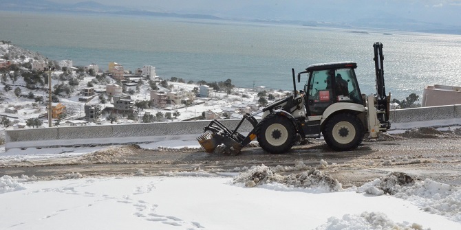Çandarlı'da karla gelen renkli görüntüler