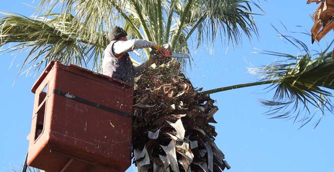 Çandarlı'da Palmiyelere Kışlık Bakım