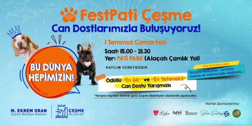 1 Temmuz cumartesi günü saat 15.00 - 21.30 saatleri arasında yapılacak olan etkinlik Pati Park'ta (Alaçatı Çamlık Yol) gerçekleşecek.
