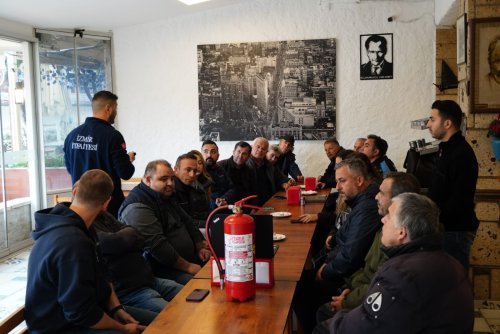 Büyükşehir Belediyesi İtfaiye Eğitim Şube Müdürlüğü tarafından Çeşme Belediyesi Zabıta Müdürlüğü personeline toplumda afet bilinci oluşturmak amacıyla yangın güvenlik eğitimi verildi.