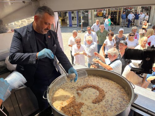 Cumhuriyet Halk Partisi İzmir İl Başkanlığı Alsancak Kıbrıs Şehitleri caddesinde Aşure günü etkinliği düzenledi. Düzenlenen etkinlikte ilk aşureleri CHP İzmir İl Başkanı Şenol Aslanoğlu dağıttı.