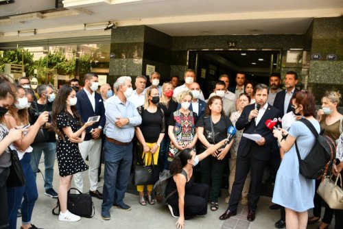 CHP İzmir İl Başkanı Deniz Yücel, il yönetimi ile birlikte Konak'taki hizmet binası önünde basın açıklaması gerçekleştirdi