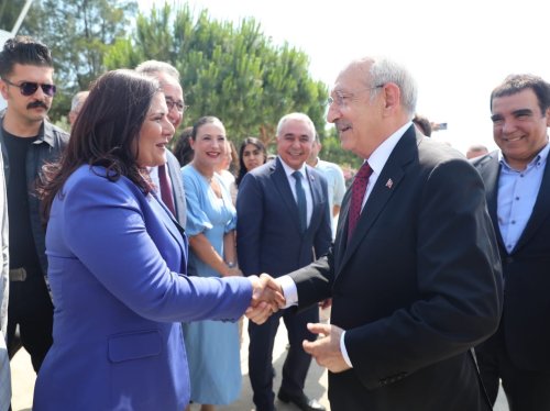 İzmir'de Kemal Kılıçdaroğlu'nu Karşılayan Aydın Büyükşehir Belediye Başkanı Özlem Çerçioğlu, "Aydın Tekstil Park'ımızın açılış törenine katılmak ve bir dizi etkinlik gerçekleştirmek için kentimize gelen Genel Başkanımız Sn. Kemal Kılıçdaroğlu’nu karşıladık. Aydınımıza gelerek bizleri onurlandırdığı için kendilerine teşekkürlerimi sunuyorum" açıklamasını yaptı.