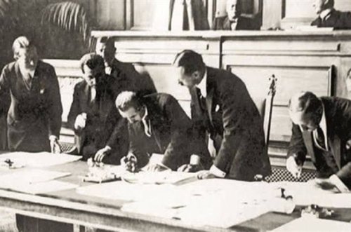 "Lozan Antlaşması, Büyük Önder Mustafa Kemal Atatürk'ün ileriyi gören yönetimi ve İsmet İnönü başkanlığındaki heyetin üstün diplomatik tutumları sayesinde imzalanmıştır.