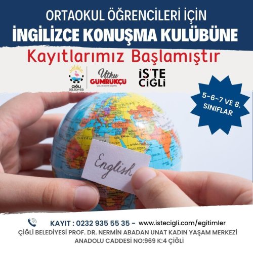Çiğli Belediyesi sosyal medya hesabından yaptığı paylaşımla, ortaokul öğrencileri için 'İngilizce Konuşma Kulübü'ne kayıtların başladığını duyurdu.