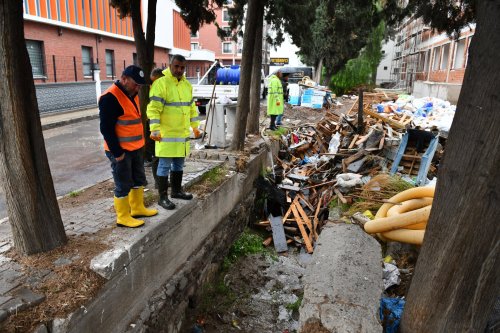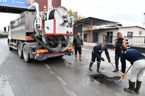 Su akışının sağlanması amacıyla mazgalların, su kanallarının atık maddelerden arındırılması çalışmalarına titizlikle devam ediyoruz."