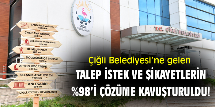 Çiğli Belediyesi tarafından vatandaşların hizmet memnuniyet oranını yükseltmek amacıyla sürdürülen çalışmalar doğrultusunda 2021 yılında 13 olan başvuru kanalı 2022 yılı içerisinde Muhtarlıklar ve İzmir Büyükşehir Belediyesi Hemşehri İletişim Merkezi entegrasyonu ile 15’e çıkarıldı. 2022 yılında bu iletişim yolları aracılığıyla toplam 33 bin 686 şikayet ve talep ulaşmış olup, gelen taleplerin 33 bin 118’i sonuçlandırıldı. Taleplerin çözüme kavuşturulma hızı ise ortalama 72 saate düşürüldü.
