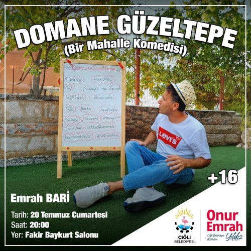Belediyenin sosyal medya hesabından, "Emrah Bari'nin 'Domane Güzeltepe' isimli tek kişilik stand up gösterisi ile kahkaha dolu bir akşama hazır mısınız?" notuyla yapılan açıklamada etkinliğin ücretsiz ve 16 yaş üzerine yönelik olduğu aktarıldı.