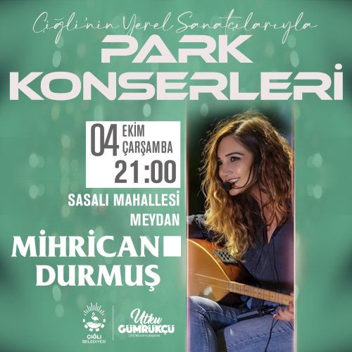 MEDYA EGE - Çiğli Belediyesi, yerel sanatçılarıyla park konserlerine devam ediyor. Bu kapsamda Çiğli'nin yerel sanatçısı Mihrican Durmuş, Çiğlili müzikseverler ile buluşacak.