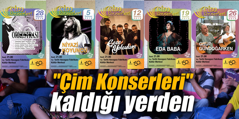 İzmir Büyükşehir Belediyesi Kent Orkestrası 28 Haziran, ağabeyi merhum Kazım Koyuncu gibi Karadeniz müziğini rock ile birleştiren Niyazi Koyuncu 5 Temmuz, Türk Rock müziği temsilcilerinden Gece Yolcuları 12 Temmuz, eski müziklere farklı bir yorum getiren genç sanatçı Eda Baba 16 Temmuz ve Türkçe pop müziğin efsane isimlerinden Grup Gündoğarken de 26 Temmuz’da Çim Konserleri kapsamında sahne alacak. Tarihi Havagazı Fabrikası’ndaki konserler saat 21.00’de sahneye çıkacak.