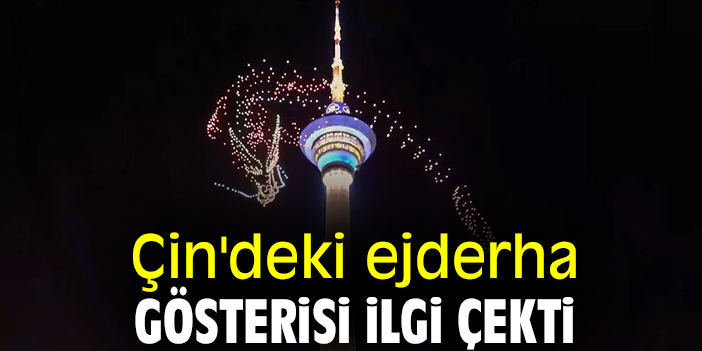 Yaklaşık bin dron kullanılarak oluşturulan uçan ejderha kulenin etrafında tur attı. İlginç dron gösterisi şehrin büyük bir bölümünde izlenebildi.