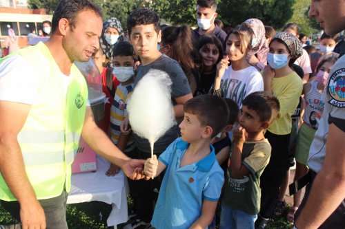 Oyun parkurları ve diğer etkinliklerle eğlenceli vakit geçiren minikler “Ağustos Böceği ve Karınca Baltacıya Karşı” tiyatro oyunun başlamasıyla sahne önünde yerlerini alarak sergilenen oyunu ilgiyle izlediler. Güncel konuların işlendiği oyunda geçtiğimiz aylarda, ülkenin dört bir yanında yaşanan orman yangınları işlenerek ormanlar ve çevre hakkında duyarlı olunması gerektiğine vurgu yapıldı. Çocuklar sergilenen oyun ile hem eğlendi hem de öğrendi.