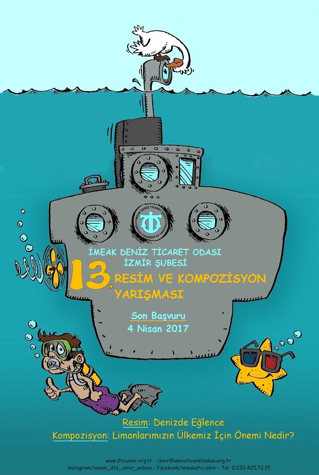 İMEAK Deniz Ticaret Odası İzmir Şubesi, çocuklara deniz sevgisi ve deniz temizliğini aşılamak, denizcilik ekonomisinin ülkemiz için önemini anlatmak amacıyla 13. Resim ve Kompozisyon Yarışması’nı düzenliyor.