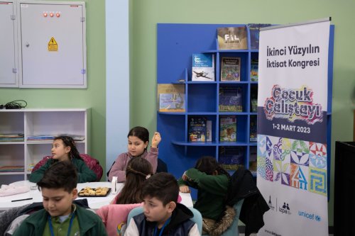 6 Şubat 2023'te yaşanan büyük deprem felaketinin ardından 15-21 Mart tarihlerine ertelenen İkinci Yüzyılın İktisat Kongresi’nin hazırlık toplantıları, çalıştay ve forumlarla sürüyor. “Geleceğin Türkiyesi’ni inşa ediyoruz” sloganıyla yola çıkan kongrenin hazırlık çalışmalarından “Çocuk Çalıştayı”, İzmir Büyükşehir Belediyesi ve UNICEF (Birleşmiş Milletler Çocuklara Yardım Fonu) işbirliğiyle düzenleniyor. Limontepe Masal Evi’ndeki çalıştaya İzmir Büyükşehir Belediyesi yetkilileri, UNICEF temsilcileri ve çocuklar katılıyor. Çalıştaya katılan çocuklar, çeşitli etkinlikler aracılığıyla iktisat kavramı ve şehirlerde kendilerini etkileyen problemler üzerinde yoğunlaşıyor. Çocukların çalıştay sırasında iktisat kavramıyla ilgili çizdikleri resimler ise 15-21 Mart’ta düzenlenecek İkinci Yüzyılın İktisat Kongresi’nde sergilenecek.