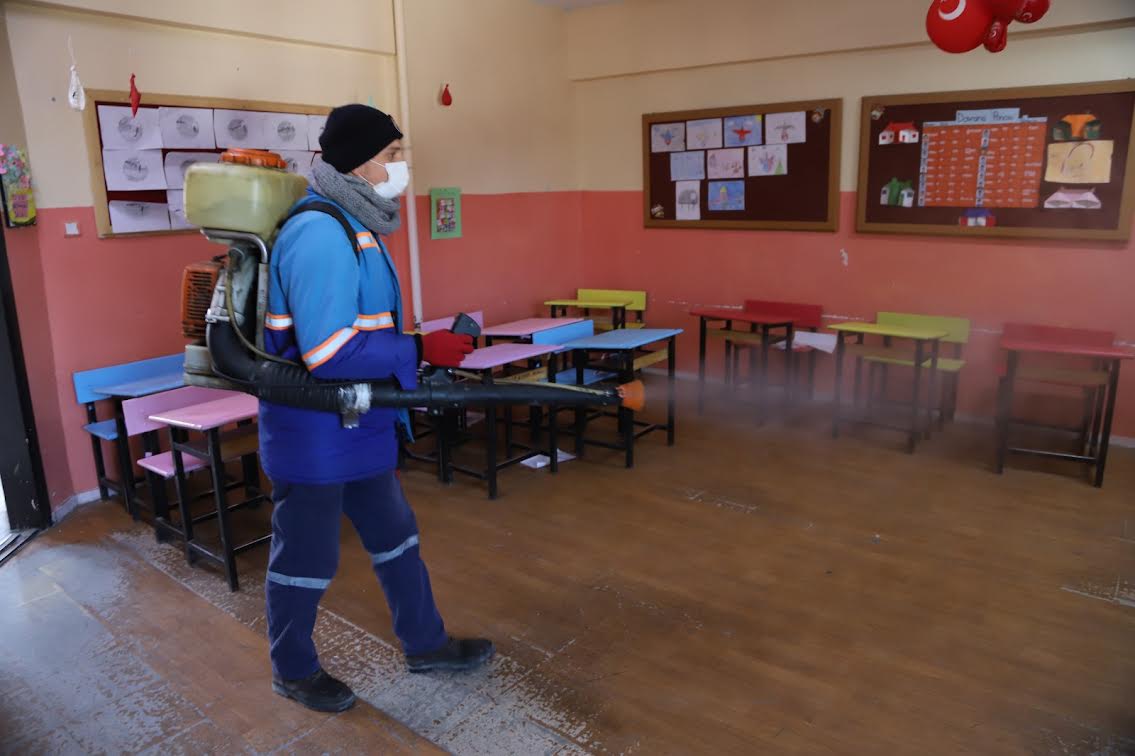 Başkan Kayalar, öğrencilerin ve öğretmenlerin dezenfekte ilaçlarından etkilenmemeleri için okullardaki çalışmalara yarıyıl tatilinde ağırlık verdiklerini belirterek şunları kaydetti: