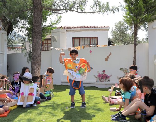 İEÜ Beyaz Köşk Anaokulu’nda her ay farklı bir konuda proje etkinlikleri kapsamında çeşitli atölye ve tasarım çalışmaları gerçekleştiren çocuklar, okul öncesi öğretmenleri Merve Yıldırım, Merve Öztekin ve Seray Songür’ün destekleriyle aileleri ile birlikte kendi kostümlerini tasarladı.
