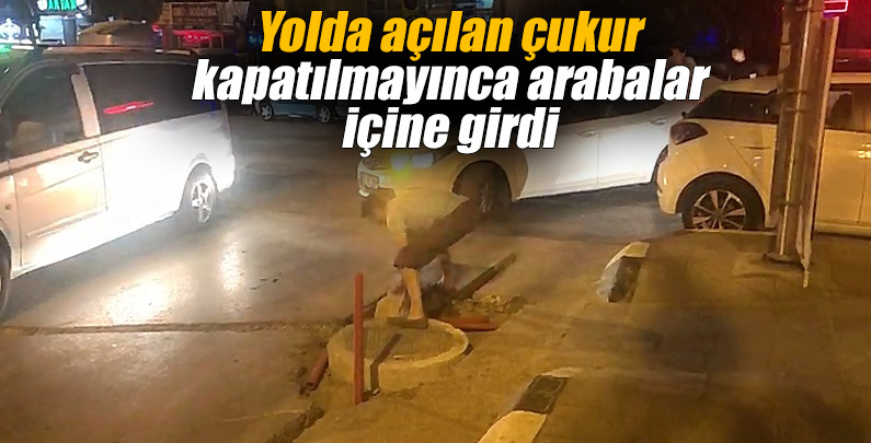 Yolda açılan çukur kapatılmayınca arabalar içine girdi