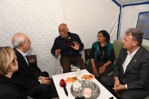 CHP Genel Başkanı ve Millet İttifakı'nın Cumhurbaşkanı Adayı Kemal Kılıçdaroğlu da, bütün belediye başkanlarıyla deprem yaralarını sarmak için var güçleriyle çalıştıklarını belirterek, "Türkiye'nin çözülemeyecek hiçbir sorunu yok. Tüm sorunların üstesinden birlik ve beraberlik içinde geleceğiz. Bugün de deprem bölgesinde aynı şeyi yapıyoruz. Tüm başkanlarımızla sahadayız. Türkiye'nin dört bir yanından belediyelerimizle 11 ilimizdeki vatandaşlarımızın yanındayız, yanlarında olmaya da devam edeceğiz" diye konuştu.