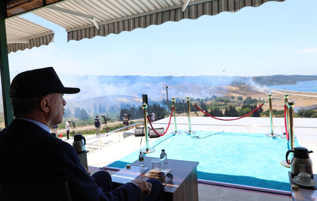 Cumhurbaşkanı Recep Tayyip Erdoğan, İzmir'in Seferihisar ilçesinde icra edilen ve 45 ülkeden bin 745 yabancı askeri personelle beraber TSK unsurlarıyla toplamda 10 bin 884 askeri personelin katıldığı Efes-2024 Birleşik Müşterek Fiili Atışlı Tatbikatı'nı yerinde izledi.