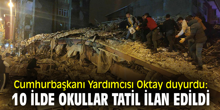 Cumhurbaşkanı Yardımcısı Fuat Oktay depremden etkilenen 10 ilde okulların 1 hafta boyunca tatil edildiğini açıkladı. (Kahramanmaraş, Kilis, Diyarbakır, Adana, Osmaniye, Gaziantep, Şanlıurfa, Adıyaman, Malatya ve Hatay)