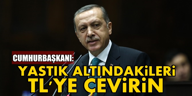 Cumhurbaşkanı Erdoğan, "Niçin yastığının altında bu karşılığı olmayan parayı saklayacaksın. Gelin bunu milli paramıza çevirelim. Milli değerlere sahip çıkacağız ya dem bu dem, zaman bu zaman, gelin dolarınızı euronuzu TL’ye çevirin" dedi.