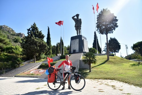 2005 yılından beri Türkiye’nin farklı coğrafyalarına vatan uğruna canlarını feda eden aziz şehitlerimiz anısına pedal çevirdiğini söyleyen Orhan Kotluk, “Bu yolculuğumun sonunda da Atamıza ve silah arkadaşlarımıza şükranlarımızı sunmak adına için şanlı bayrağımızı göndere çekip, Anıtkabir’i ziyaret edeceğim. Bu yolculuğuma başlarken bana destek olan Bornova Belediyesi’ne çok teşekkür ediyorum” dedi.