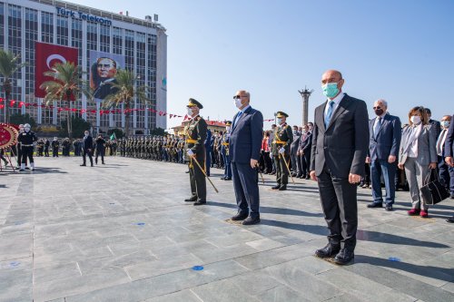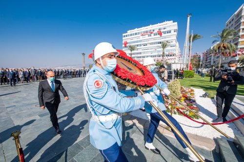 İzmir’de 29 Ekim Cumhuriyet Bayramı kutlamaları kapsamında Cumhuriyet Meydanı’nda tören düzenlendi. İzmir Valisi Yavuz Selim Köşger ile İzmir Büyükşehir Belediye Başkanı Tunç Soyer’in katıldığı törende Atatürk Anıtı’na çelenk bırakıldı.