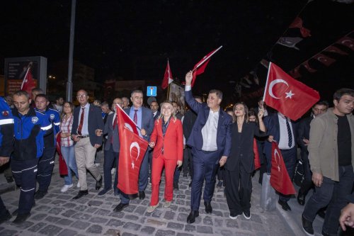 İzmir Büyükşehir Belediye Başkanı Dr. Cemil Tugay, 29 Ekim Cumhuriyet Bayramı’nda 7’den 70’e binlerce İzmirli ile fener alayında buluştu. İzmirliler 350 metrelik Türk Bayrağı taşıyarak Cumhuriyet coşkusuna ortak oldu.