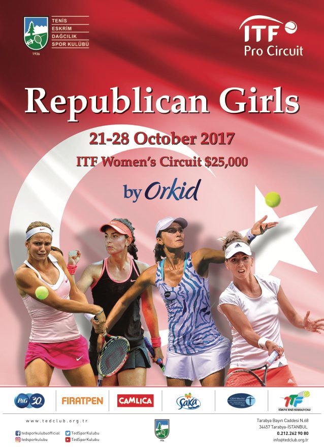 21 Ekim’deki eleme müsabakalarıyla başlayan Cumhuriyet Kızları ITF turnuvasında çiftler finali 27 Ekim Cuma, tekler finali ise 28 Ekim Cumartesi günü oynanacak.