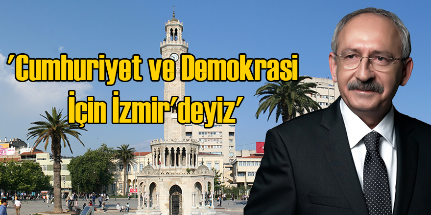 Cumhuriyet Halk Partisi lideri Kemal Kılıçdaroğlu bir açıklama yaparak Cumhuriyet ve Demokrasi için İzmir'de olacaklarını söyledi. Cumhuriyet'in demokrasiyle taçlandırıldığı zaman bir anlam kazanacağını söyleyen Kılıçdaroğlu, bunun başarıldığı zaman uygar dünyanın bir parçası olunacağını söyledi.