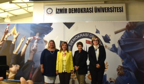 İzmir Ege Medya Platformu buluşmasında Demokrasi Üniversitesi Rektörü Prof. Dr. Bedriye Tunçsiper ile birlikte Rektör Yardımcısı Prof. Dr. Berna Dirim Mete, Üniversite Genel Sekreteri Dr. Dilek Karaman ve Meslek Yüksekokulu Müdür V. Prof. Dr. Aslı Güneş Gölbey yer aldı.