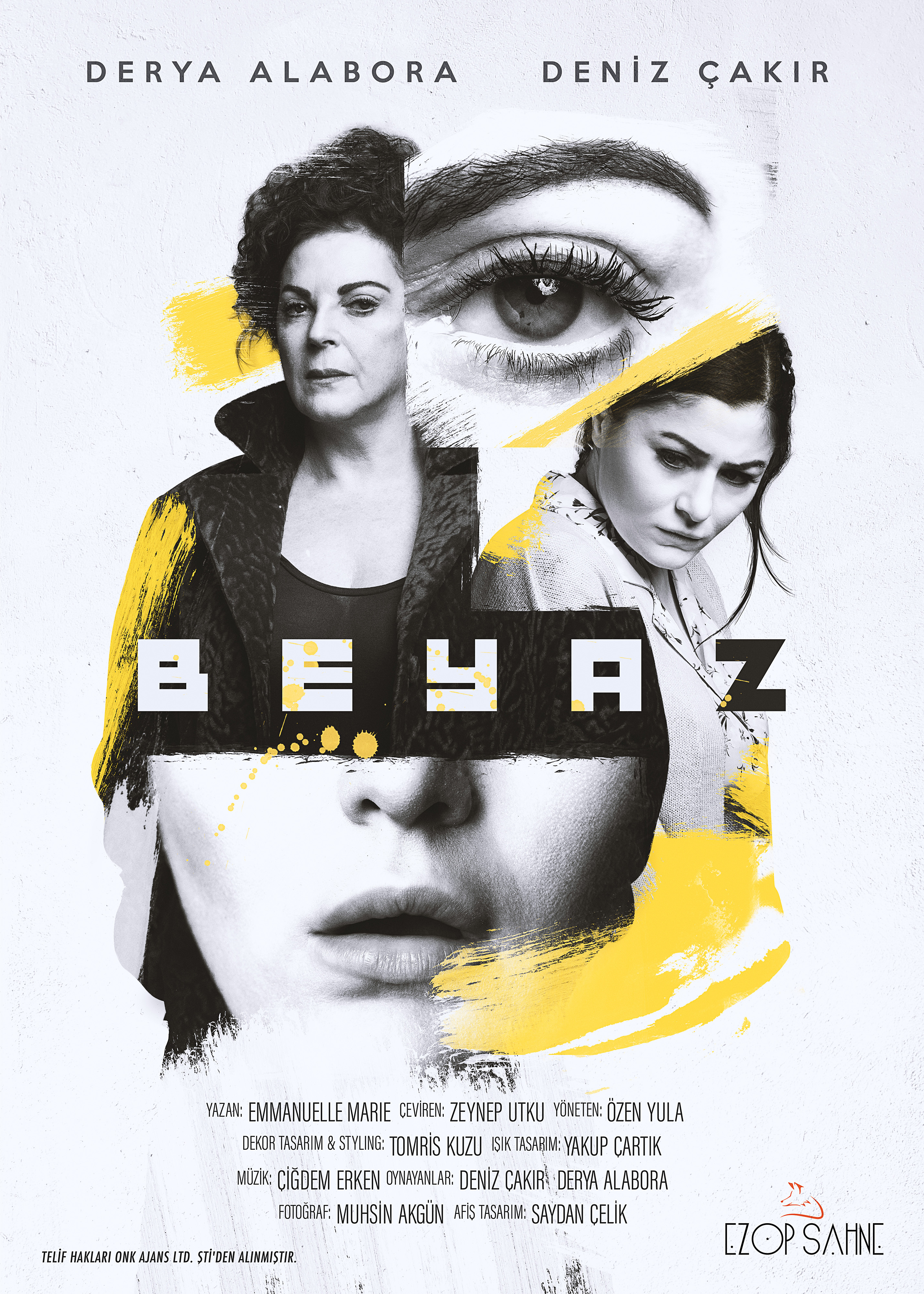 2016 yılında kurulan Ezop Sahne’nin prodüksiyonu olan Beyaz; hayatını evinden uzakta, kendi isteğine göre yaşayan abla ve hayallerini gerçekleştiremeyen kız kardeşin geçmişleriyle hesaplaşmasını anlatıyor. 7 Şubat’tan itibaren Ezop Sahne’de sahnelenecek oyunda Deniz Çakır ve Derya Alabora’nın etkileyici düetleri en az oyun kadar ilgi çekeceğe benziyor.