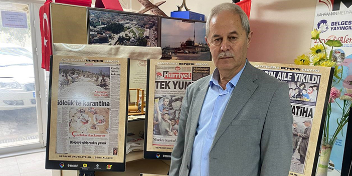 Gebze'de ikamet eden gazeteci İsmail Kahraman (63), 2017 yılında bir ilke imza atarak, Kocaeli'nin ilk ve tek özel araştırma kütüphanesini kurmuştu. Kütüphanesinde çok sayıda kitap ve çeşitli argümanlar bulunduran Kahraman, 27 Mart - 2 Nisan tarihleri arasında kutlanan Kütüphanecilik Haftası'nda ise özel bir sergi düzenlemeye karar verdi. Sergi için kütüphanesinde özel alan oluşturan Kahraman, deprem gerçeğinin unutulmaması için 24 yıldır biriktirdiği gazete ve fotoğrafları çıkardı. Kahraman'ın sergisinde, 1800'lü yıllarda İstanbul'da meydana gelen deprem bilgilerinin yer aldığı kitaplar, dünyada meydana gelen depremlerle ilgili fotoğraflar ile eski ve yeni tarihe ait 500'ü aşkın deprem manşetlerinin olduğu gazeteler bulunuyor.