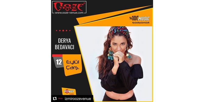Yakın zamanda çektiği kliple bir çok müzikseverin ilgisini çeken ve kamuoyunda adı sıkça duyulan Derya Bedavacı, Türkiye'nin en ünlü seslerini ağırlayan, İzmir'in en çok tercih edilen mekanlarından olan Ooze Venue sahnesinde olacak.