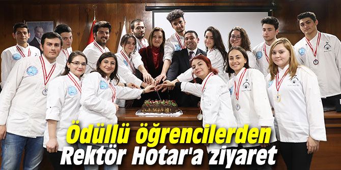 Ödüllü öğrencilerden Rektör Hotar'a ziyaret