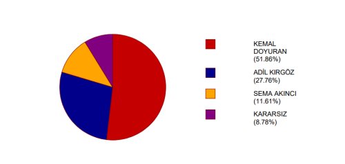 7 bin 108 kişinin katıldığı anket sonucuna göre Dikili’nin bağımsız adayı Kemal Doyuran’ın yüzde 51,86 oran ile açık ara önde olduğu ortaya çıktı. CHP’nin mevcut başkanı olan Adil Kırgöz ise yüzde 27,76 ile ikinci sırada yer alırken, Cumhur İttifakı’ndan MHP’nin adayı olan Sema Akıncı’da yüzde 11,61 ile üçüncü sırada yer aldı.