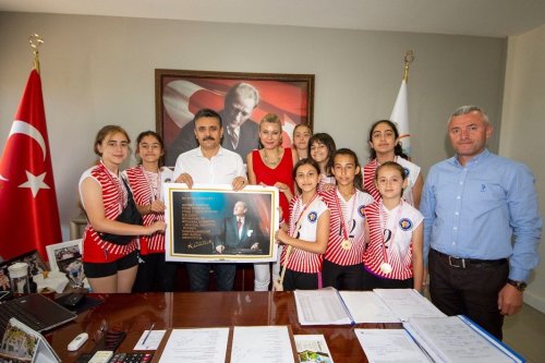 Okullar Arası Küçük Kızlar Voleybol Ligi finallerinde beşinci olan Cumhuriyet Ortaokulu’nun sporcuları, Dikili Belediye Başkanı Adil Kırgöz'ü ziyaret etti.