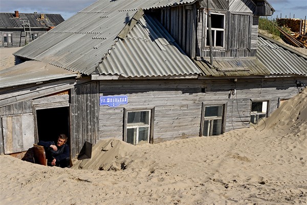 Arkhangelsk Nenets Özerk Okrugu'nda bulunan köy adeta kuma gömülüyor.
