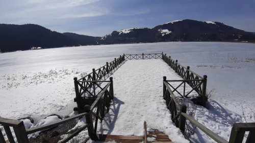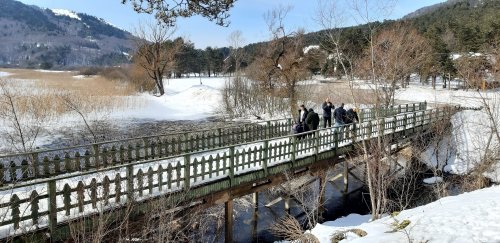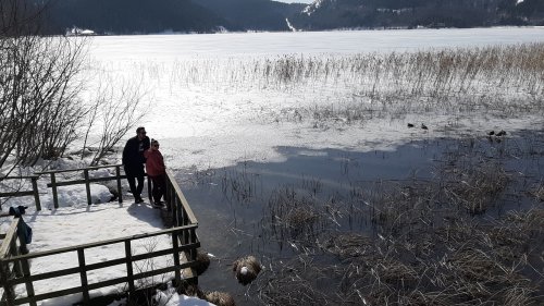 Öte yandan, hava sıcaklıklarının artmasıyla birlikte göl çevresindeki karlar erimeye başlasa da göl yüzeyinde kalan buz tabakası, yiyecek bulmakta zorlanan ördekleri olumsuz etkiliyor. Duyarlı vatandaşlar, aç kalan ördekleri elleriyle besleyerek onlara yardımcı oluyor.