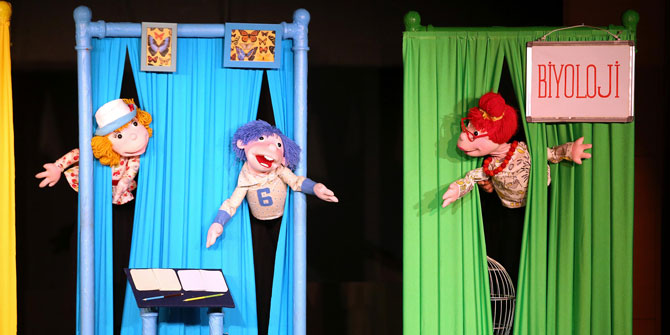 Bulgaristan Kukla Topluluğu’nun sahnelediği ve yetişkinlerin de bir zamanlar çocuk olduğunu, hayal kurmayı ve soru sormayı sevdiğini anlatan “Küçük Kurbağa” oyununu izlemeye gelen çocuklar keyifli bir gün geçirdi.