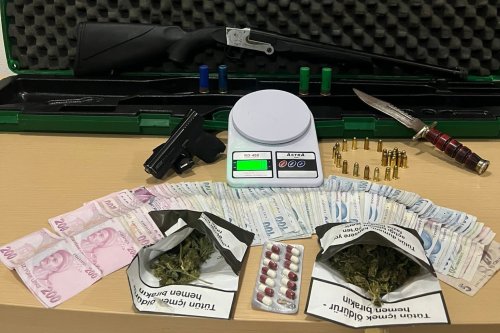Edinilen bilgiye göre, Bayındır İlçe Emniyet Müdürlüğü ekipleri, şüphe üzerine bir aracı durdurdu. Durdurulan araçta yapılan aramada, 55 gram esrar, 13 adet sentetik ecza, bıçak, ruhsatsız silah, av tüfeği, hassas terazi, fişek ve uyuşturucu ticaretinden elde edildiği değerlendirilen nakit para ele geçirildi. Araç içerisinde bulunan S.A., M.G., ve G.M., polis ekiplerince gözaltına alındı.