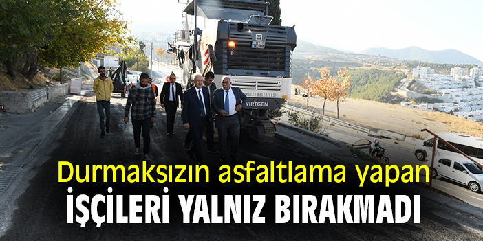 Durmaksızın asfaltlama yapan işçileri yalnız bırakmadı