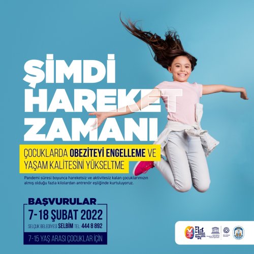 Efes Selçuk Belediyesi'nin “Şimdi Hareket Zamanı” adlı projesiyle kentte yaşayan çocuklarda obezite riski ortadan kaldırılarak, sağlıklı yaşam alışkanlıklarının kazandırılması amaçlanıyor. Daha sağlıklı nesiller yetiştirmeyi amaçlayan “Şimdi Hareket Zamanı” Projesi’nden yararlanmak isteyen çocuklar velileri ile birlikte 7- 18 Şubat tarihleri arasında SELBİM üzerinden başvuru yapabilecekler.