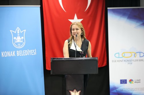 Ege Kent Konseyleri Birliği Buluşması, Konak Belediyesi ve Konak Kent Konseyi ev sahipliğinde Türkan Saylan Kültür Merkezi’nde gerçekleştirildi. “21. Yüzyılda Kent Konseylerinde Sivil İnisiyatif, Katılımcılık ve Dijital Dönüşüm 4.0” konulu bir de panelin yer aldığı buluşmaya ev sahibi Konak Belediye Başkanı Nilüfer Çınarlı Mutlu’yla birlikte, Fındıklı Belediye Başkanı Ercüment Şahin Çervatoğlu, Hopa Belediye Başkanı Utku Cihan, İzmir Büyükşehir Belediyesi Başkan Vekili Altan İnanç, CHP İzmir önceki dönem Milletvekili Zeynep Altıok, Ege Kent Konseyleri Birliği Dönem Başkanı ve Konak Kent Konseyi Başkanı Hamit Mumcu, Ege Kent Konseyleri Birliği Onursal Üyesi ve Kızıltepe Kent Konseyi Başkanı Aslan Başboğa, İzdeniz Yönetim Kurulu Başkanı Dr. Işıkhan Güler, Türkiye Kent Konseyleri Platformu Dönem Başkanı ve Esenyurt Kent Konseyi Başkanı Mehmet Hanifi Kaya, İzmir Tabip Odası Başkanı Prof. Dr. Mehmet Ceyhun Özyurt, Kent Konseyleri başkan, genel sekreter ve üyeleri, Konak Belediyesi Meclis Üyeleri ve muhtarlar katıldı. Panel öncesinde Ege Kent Konseyleri Birliği tanıtım videosu ile Gezi direnişini anlatan kısa film gösterimi yapıldı.