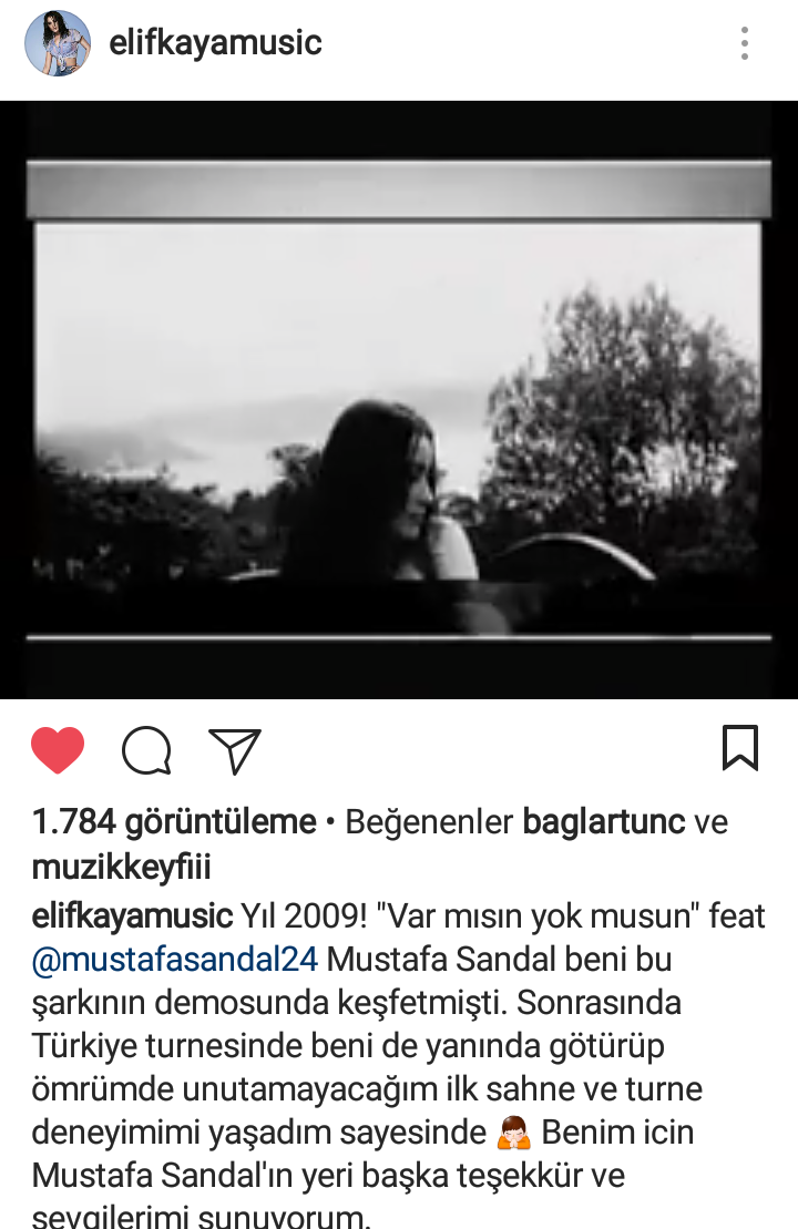 Sonrasında Türkiye turnesinde beni de yanında götürüp ömrümde unutamayacağım ilk sahne ve turne deneyimini yaşadım sayesinde...Benim için Mustafa Sandal'ın yeri başka teşekkür ve sevgilerimi sunuyorum" dedi